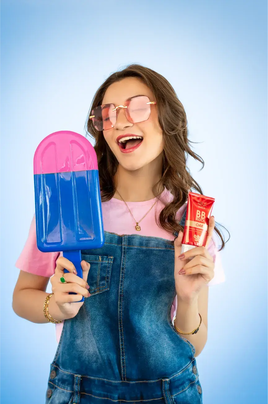 We offer tinted sunscreen BB Block (SPF 50+), which doubles as a sunblock with foundation for a flawless, even-toned look. These products provide coverage and protection, making them ideal for daily wear.